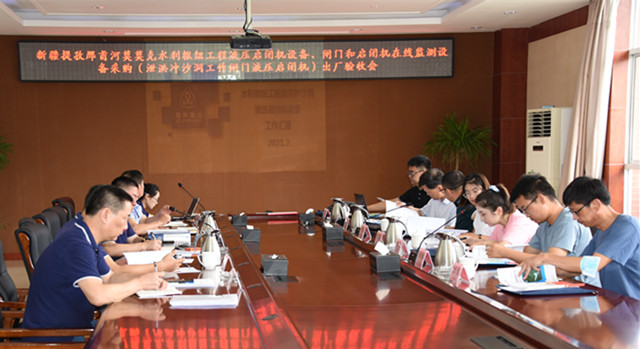 喀什地區莫莫克水利樞紐工程建設管理局、黃河勘測設計研究院有限公司、黃河設計院·新疆水利水電設計院聯合體EPC項目部、廣州新珠工程監理公司、常州液壓等領導與專家們,出席了本次出廠驗收會議。