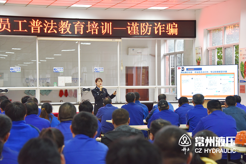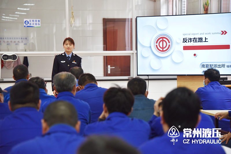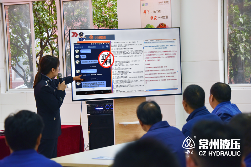 針對當前各類詐騙警情持續多發高發、詐騙手法變化多樣的情況,為進一步增強企業員工安全風險防範意識,提高對詐騙信息的甄別、抵di禦yu能neng力li,常chang州zhou液ye壓ya成cheng套tao設she備bei廠chang有you限xian公gong司si舉ju辦ban謹jin防fang詐zha騙pian宣xuan教jiao活huo動dong,邀yao請qing了le常chang州zhou市shi公gong安an局ju武wu進jin分fen局ju錢qian警jing官guan擔dan任ren主zhu講jiang,由you常chang州zhou液ye壓ya總zong經jing辦ban朱zhu主zhu任ren主zhu持chi,全quan體ti職zhi工gong參can加jia了le此ci次ci活huo動dong。